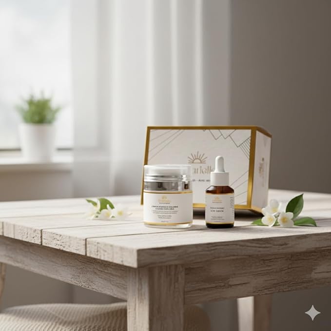 "SOLARIELLE Anti-Aging Skincare Set | Hyaluronic Acid Serum & Collagen Cream | Face & Neck Duo for Wrinkle Reduction | Natural Peptide Formula"